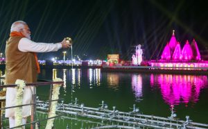 प्रधानमंत्री नरेन्द्र मोदी ने मंत्रोच्चारण के बीच की ब्रह्मसरोवर पर सांध्य कालीन महाआरती